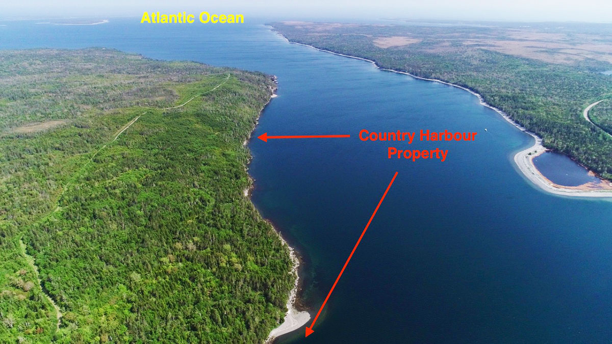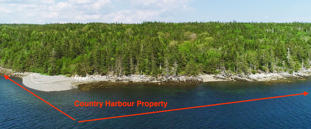 All properties are located on the top of a peninsula located at Country Harbour. Country Harbour is a large natural harbour which extends twenty kilometres inland. This linvites to a variety of water sports such as fishing, kayaking, sailing and swimming, motorboating and waterskiing. Some of the lots slope gently to the ocean, others have a steeper drop. All properties have a good sized building spot with a south-west view to the Atlantic and loads of privacy. The oceanfront varies between 200 and 300 feet.