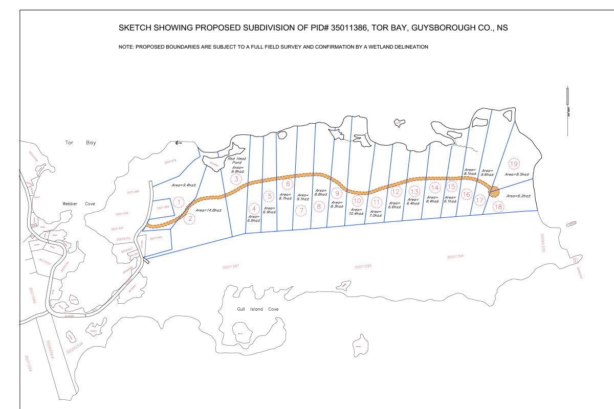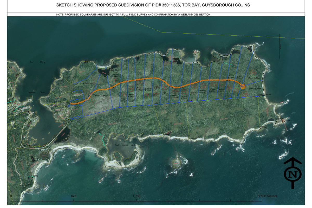 This 400ac peninsula at Tor Bay is a rare find. It’s located along the rugged coastline of the Eastern Shore – only 25 minutes away from picturesque Town of Guysborough, 1.15h away from the well-known university town of Antigonish and less than 3 hours away from Halifax International Airport.